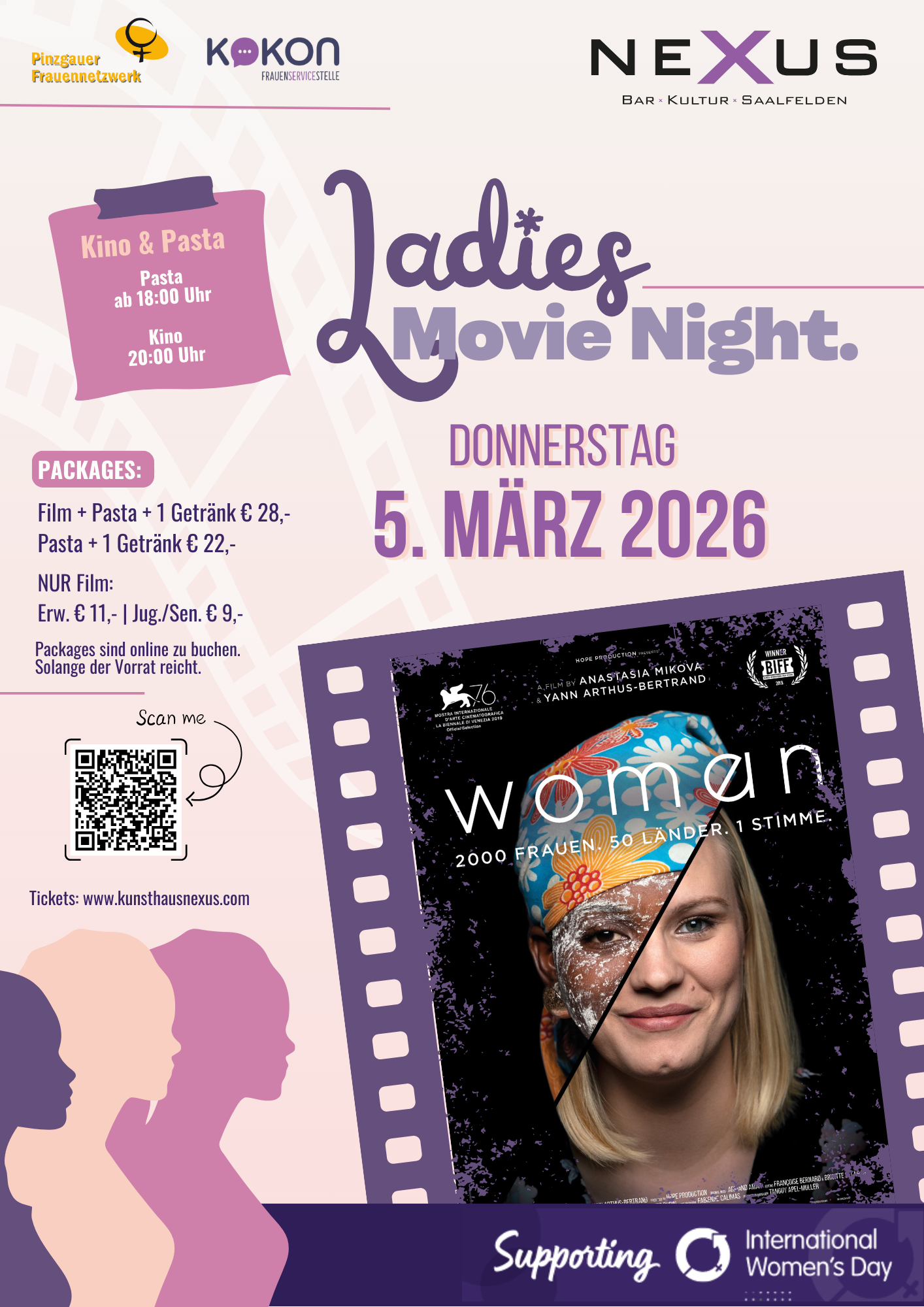 Film + Pasta + 1 Getränk € 28,-